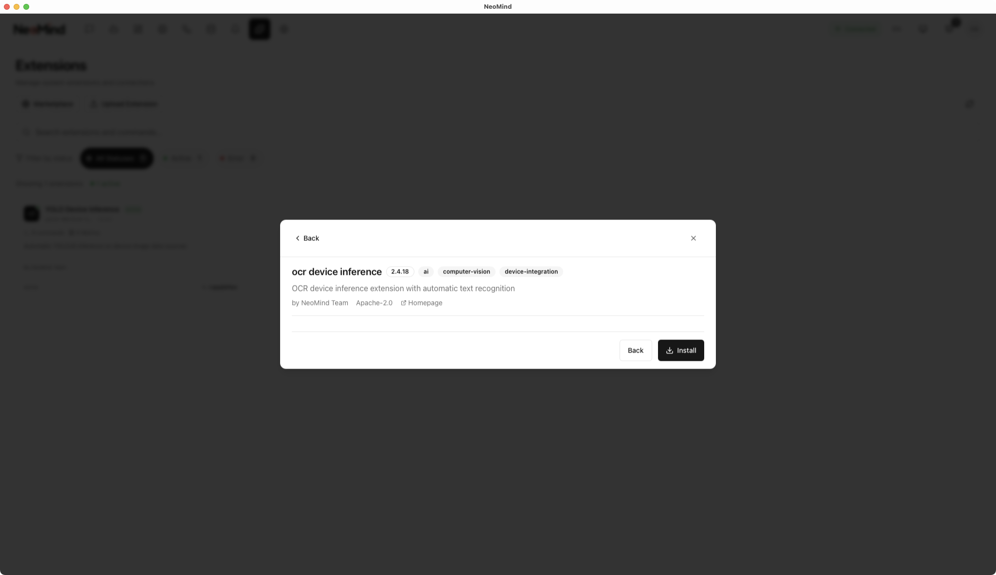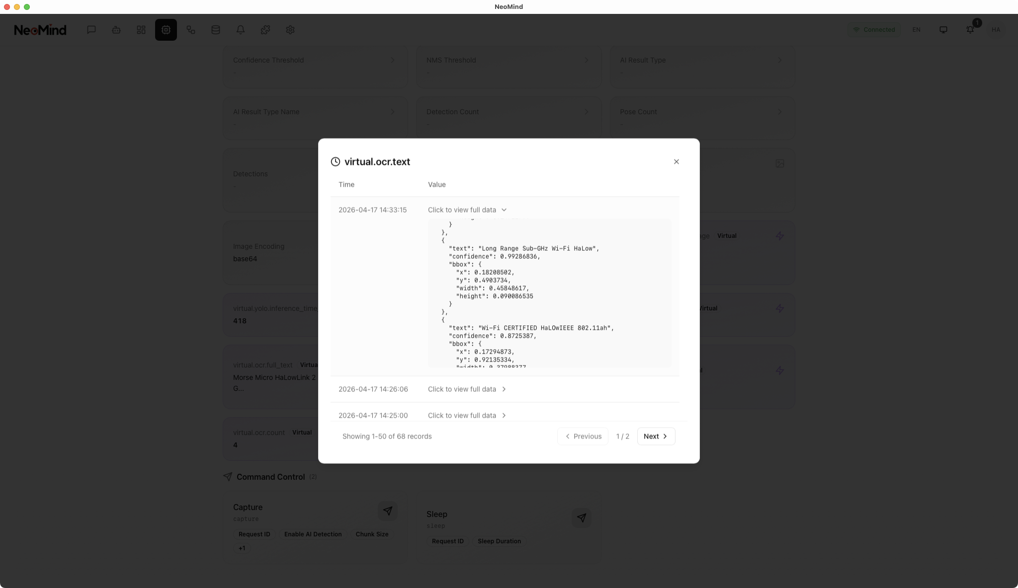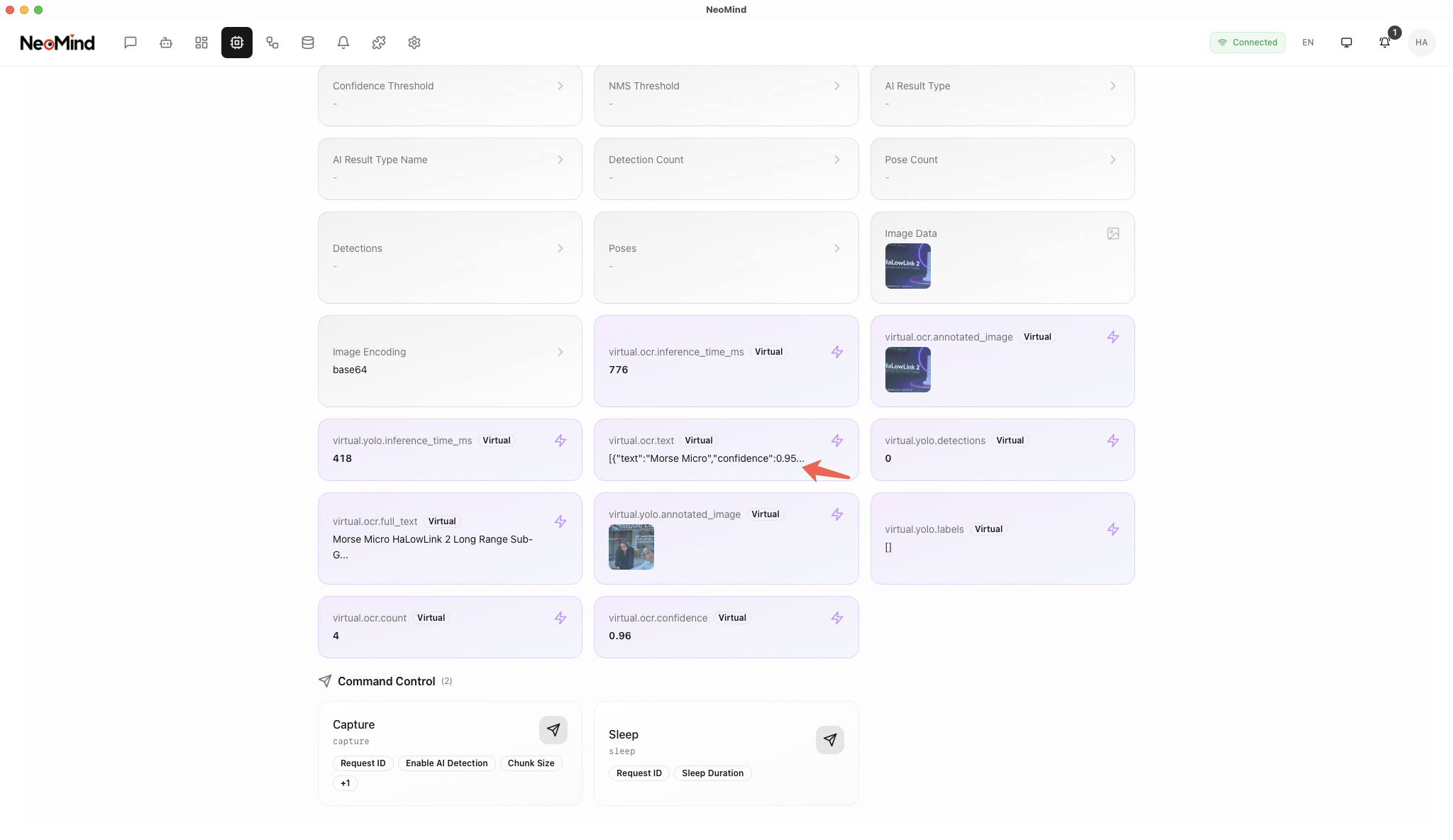 NeoMind 的 OCR 插件 可对设备采集的图像进行通用文字识别,提取图片中的文字内容并在仪表板中展示。识别结果还可通过 AI Chat 以自 然语言方式查询。