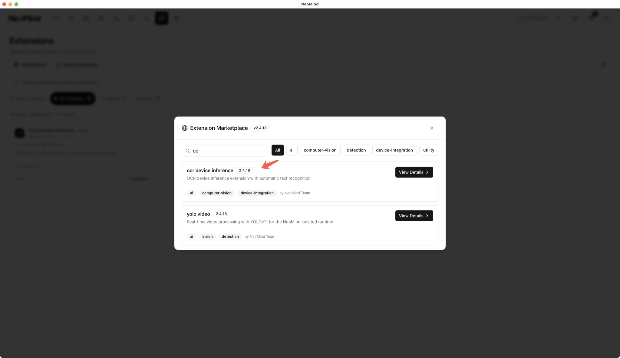 步骤 1:进入 Extensions(插件) 管理页面,找到 OCR 插件